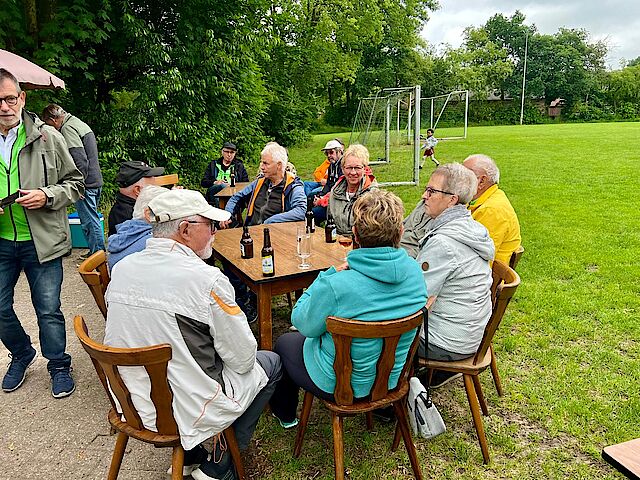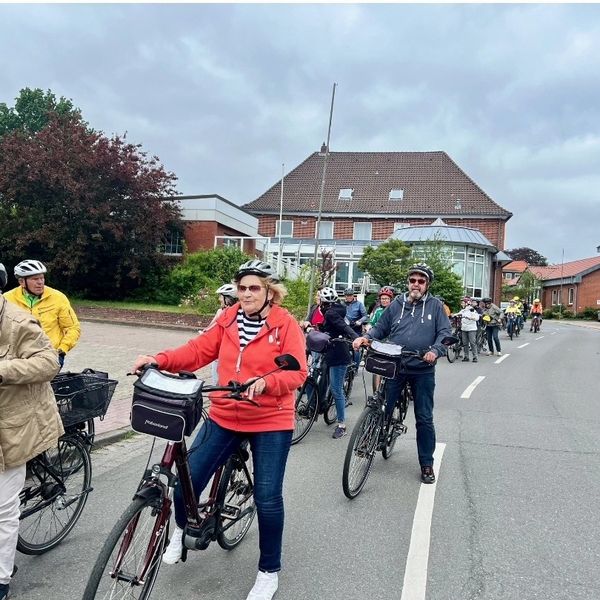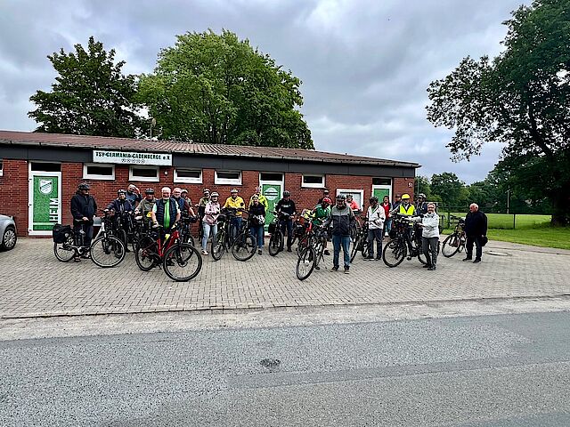 Der Einladung der Radsportgruppe des TSV Germania Cadenberge zu einer gemeinsamen Fahrradtour sind 30 Radfahrer gefolgt. Das Wetter meinte es gut mit uns, auch wenn der Wind manchmal ganz schön kräftig blies. Los ging es in Richtung Geversdorf auf dem Fahrradweg. Eine gute Gelegenheit, sich an das Fahren in der Gruppe zu gewöhnen. Schon in Balje Hörne erwartete uns leckerer Kuchen und Kaffee bei Maike von Zedlitz auf dem Gut Hörne. Und dann ging die Tour richtig los – in Richtung Balje, immer am Deich längs. Schöne und auch nicht so schöne Häuser begleiteten unsere Tour. Wiesen und Felder waren abgeerntet - es roch schon ein wenig nach Herbst. Die Gruppe fuhr nun entspannt und sicher. Das gemäßigte Tempo gab jedem die Möglichkeit sich die Gegend anzusehen und sich mit dem Nebenfahrer zu unterhalten. In Hunkenbüttel bogen wir nach rechts in Richtung Breitendeich, Hohenlucht und dann fuhren wir auf dem Wetterdeich weiter. Der Wind konnte uns nicht aufhalten, aber der Durst und andere Bedürfnisse. So legten wir an der Neuenschleuse eine kleine Pause ein. Und weiter ging es am Deich – dieses Mal in Richtung Oberndorf. Nach dem Überqueren der Oste führte uns die letzte Etappe windgeschützt am Deich entlang Richtung Geversdorf, wo wir an der Fährstelle noch eine kleine Rast einlegten. Auch die letzten Kilometer nach Cadenberge radelten wir ohne Sturz und Platten! Zufrieden und auch etwas erschöpft erreichten wir nach ca. 43 km unser Ziel das Sportlerheim. Hier erwartete uns eine Stärkung, vom TSV Germania spendiert – vielen Dank dafür! Wir haben noch ein bisschen zusammengesessen, über gemeinsame Erinnerungen und auch den neuesten Tratsch gesprochen und fuhren dann zufrieden nach Hause. Ich habe mich gefreut, einen gemeinsamen Nachmittag mit Cadenberger zu verbringen, die ich sonst nicht treffe. Natürlich waren Radfahrthemen obenan, aber es hat auch gutgetan, über die alten Schulzeiten in Cadenberge zu klönen und einen Teil der gemeinsamen Erinnerungen aufzufrischen. Wann gibt es dazu schon mal Gelegenheiten?