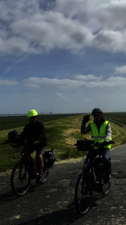 Vorher der Schreck in der Morgenstunde: Holger übersieht einen Poller. Zum Glück fängt die Pedale die Bewegungsenergie ab und nicht die Kniescheibe. Ein kurzer Check erweist: Alle Knochen sind noch okay und die Chirurgen im nahen Bremerhavener Krankenhaus bekommen nichts zu tun. Im weiteren Verlauf der Fahrt wird vor jedem Poller lautstark gewarnt.