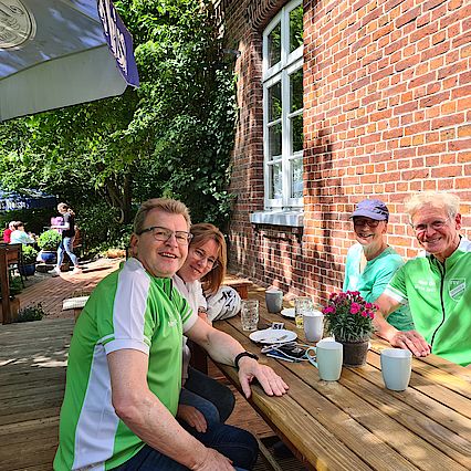 Nach einem gmeinsamen Frühstück bei Birgitt und Martin (Danke!) geht es endlich los. Die Sommertour der Fitnessgruppe des TSV Germania Cadenberge beginnt.